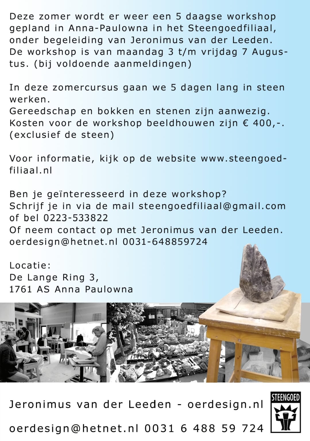 Laat je deze zomer verrassen door wat er uit steen kan ontstaan – en vooral door wat jij zelf kunt maken. We verwelkomen je graag in het atelier!